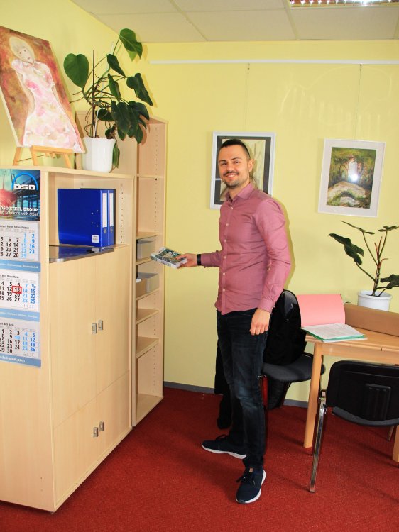 Auch Infomaterialien zogen ins neue Büro.