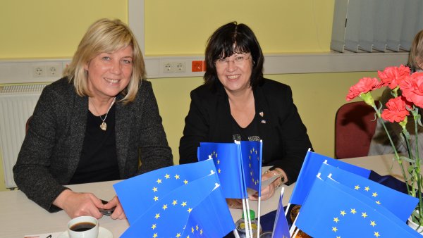 Gern gesehene Gäste: Sprembergs Bürgermeisterin, Christine Herntier (r.), und die Fraktionsvorsitzende der LINKEN im Brandenburger Landtag, Kathrin Dannenberg (l.).