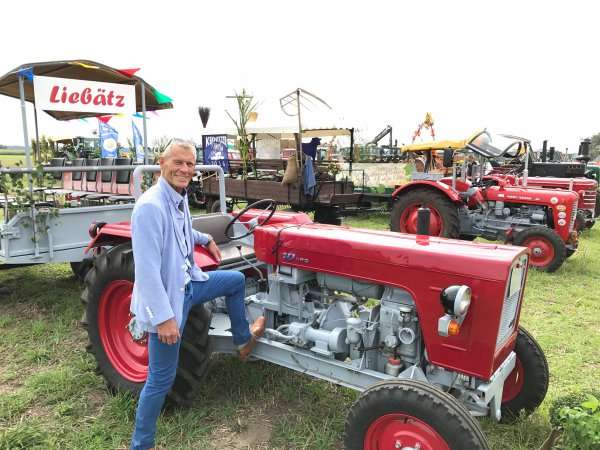Natürlich am roten Traktor: Helmut Scholz