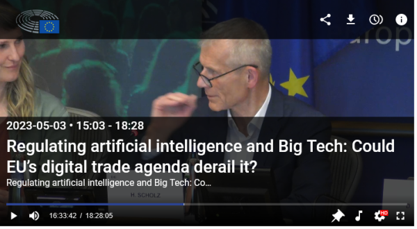 Jetzt online: Videomitschnitt des Events "Regulating artificial intelligence and Big Tech: Could EU’s digital trade agenda derail it?"