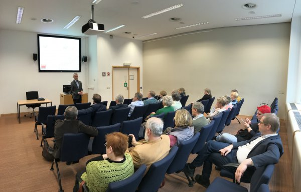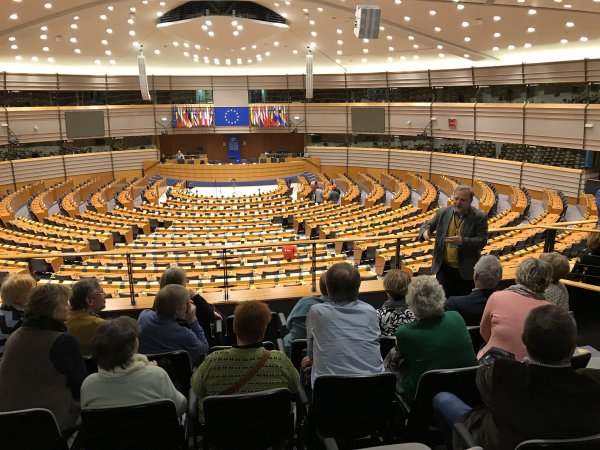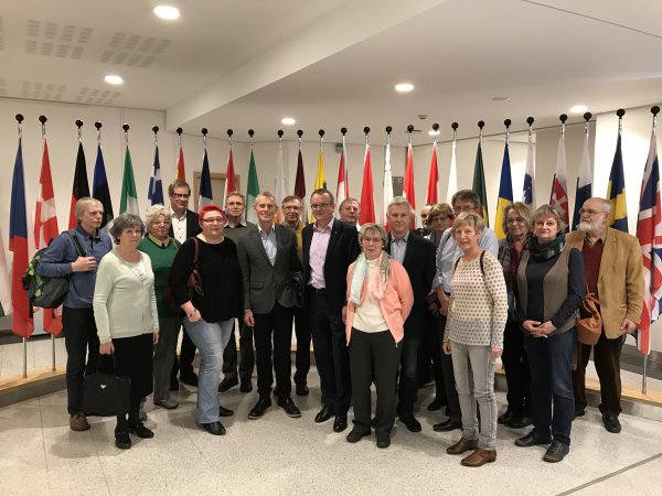 Die Reisegruppe hatte mehrere Stationen in Brüssel auf ihrem Programm. So waren der Städte- und Gemeindebund, der Sparkassen- und Giroverband, der Ausschuss der Regionen, die Brandenburger Landesvertretung in Brüssel und natürlich auch das Europäische Parlament (EP) fest eingeplant. Letztgenannte Station wurde am 20. März besucht. Helmut Scholz als Brandenburger Mitglied des Europäischen Parlaments begrüßte die Gruppe gern, berichtete über die Arbeit im Parlament und aktuelle Projekte der politischen Agenda. Im Anschluss wurde die Gruppe vom Besucherdienst des Parlaments betreut und mit der Funktions- und Arbeitsweise der europäischen Institutionen vertraut gemacht. Dazu gehörte selbstverständlich auch die Besichtigung des Plenarsaales.