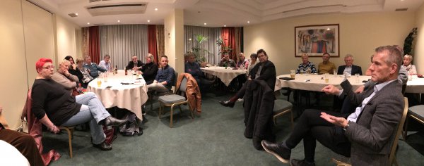 Am Abend hatte die Gruppe des kf dann in ihrem Hotel die Abgeordneten Martina Michels (Berlin) und Helmut Scholz (Brandenburg) zum Gespräch geladen. Martina Michels berichtete über ihre Themenfelder und Tätigkeiten im EP. Darunter sind Kulturpolitik, regionale Entwicklung oder auch die Außenbeziehungen zwischen dem EP und der Türkei sowie Israel. Nachdem sich auch Helmut Scholz mit einem kurzen Abriss seiner Arbeitsschwerpunkte vorgestellt hatte, ging es in die inhaltliche Diskussion mit den Brandenburger Kommunalpolitikerinnen und –politikern.