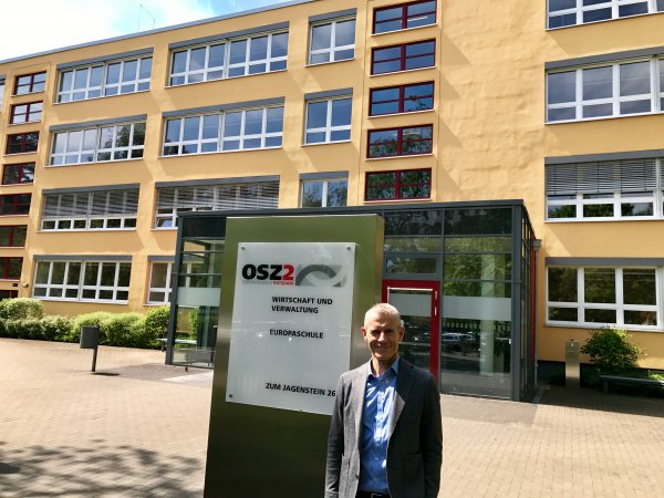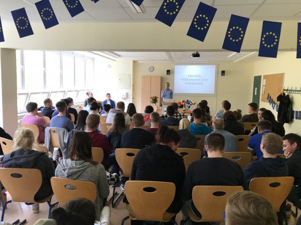 Versicherung und Spedition - das waren die Fächer der SchülerInnen, die mit Helmut Scholz am Oberstufenzentrum II in Potsdam zur Handelspolitik diskutierten.