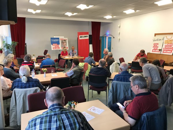 Kerstin Kühn eröffnete dann das Gespräch, indem sie an Helmut Scholz die Frage stellte, wie denn nun die aktuelle Situation in der Ukraine einzuschätzen sei. Darauf antwortend machte der Europaabgeordnete klar, dass auch der Ukrainekonflikt im Kontext des Weltgeschehens, dem Wettrüsten und der allgemein weiter zunehmenden Konfrontation einzuordnen sei.