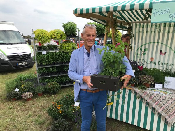 "Die kommen in den Garten!" - Helmut Scholz hat frische Kräuter gekauft.