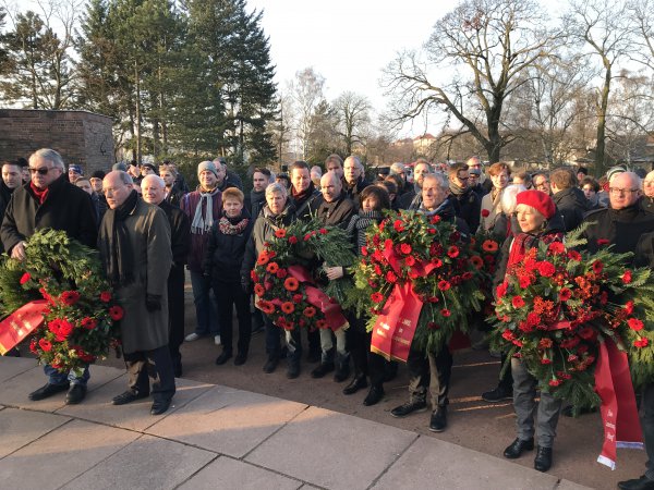 Neben dem Vorsitzenden der Europäischen Linken, Gregor Gysi, den Vorsitzenden der Partei DIE LINKE, Katja Kipping und Bernd Riexinger, den Vorsitzenden der Fraktion DIE LINKE. im Deutschen Bundestag, Sahra Wagenknecht und Dietmar Bartsch, der  Vorsitzenden der Rosa-Luxemburg-Stiftung, Dagmar Enkelmann,  und auch der Vertreter der Spitzen der Berliner LINKEN war für die Delegation der LINKEN in der Fraktion der GUE/NGL des Europäischen Parlaments Helmut Scholz vor Ort, um an den Gräbern Luxemburgs und Liebknechts in der Gedenkstätte der Sozialisten an diesem Januar-Sonntag Kränze niederzulegen.