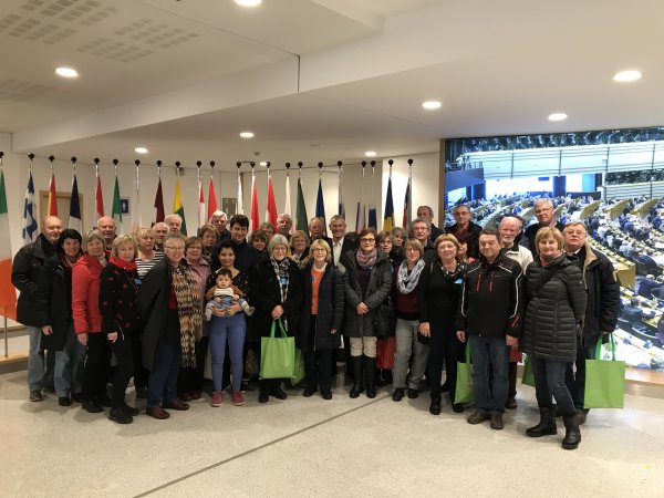 Am 5. Februar 2019 gegen 10 Uhr war der Bahnsteig bereits proppenvoll. Eine kleine Europaflagge wies uns den Weg zu einer ca. 40 Personen starken Gruppe, die sich anschickte, dem Europäischen Parlament auf Einladung des Abgeordneten Helmut Scholz einen Besuch abzustatten. Erste Gespräche zeigten, dass wir vorwiegend aus den Kreisen Teltow-Fläming, Uckermark und Cottbus kamen. Pünktlich, und das galt für alle Zugverbindungen, starteten wir. Für mich persönlich ein beeindruckendes Erlebnis, kenne ich doch Bahnfahren fast nur vom Hörensagen - und dann noch teilweise mit Tempo 240 km/h.